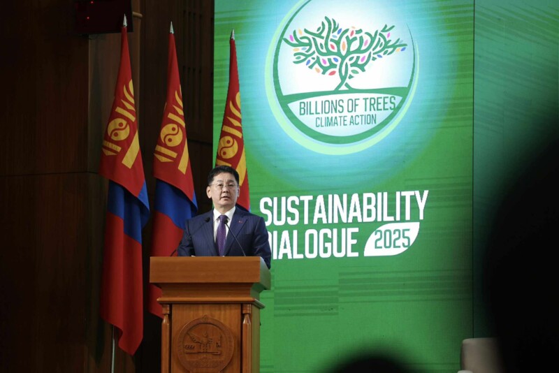 Монгол Улсын Ерөнхийлөгчийн ивээл дор “Тогтвортой байдлын яриа хэлэлцээ 2025 – Уур амьсгалын өөрчлөлт: Тэрбуман мод” чуулга уулзалт Төрийн ордонд болж байна.