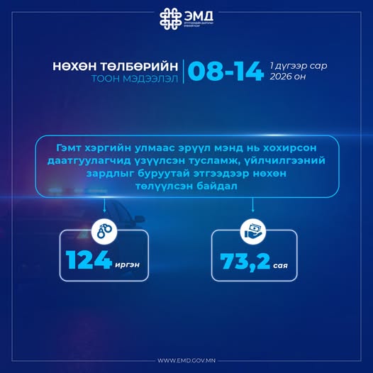 Тэгвэл энэ сарын 08-14-ны өдрүүдэд 124 даатгуулагч-иргэнд ЭМД-ын сангаас 73,2 сая төгрөг зарцуулсныг хуулийн хүрээнд буруутай этгээдээр нөхөн төлүүлж, ЭМД-ын санг хохиролгүй болголоо.