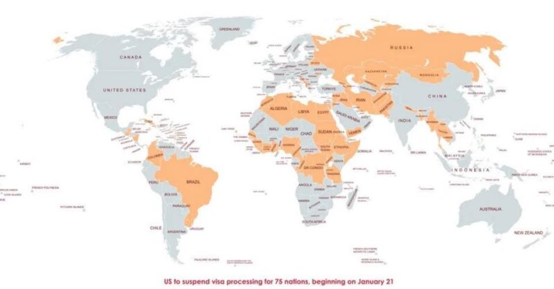 АНУ-ын Төрийн департамент энэ оны нэгдүгээр сарын 21-ний өдрөөс эхлэн гадаадын 75 улсын иргэдэд ЦАГААЧЛАЛЫН ВИЗ-ийг тодорхойгүй хугацаагаар зогсоох болсноо мэдэгдэв.