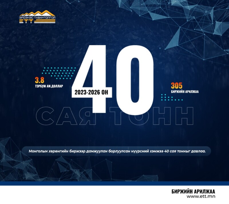 Цаашид “Эрдэнэс Тавантолгой” ХК нүүрсний биржийн арилжааг улам өргөжүүлж, олон улсын зах зээлд өрсөлдөх чадвартай, хэрэглэгчийн эрэлт хэрэгцээнд тулгаруулсан нэмүү өртөг шингэсэн бүтээгдэхүүнийг хүргэх чиглэлд анхаарч ажиллаж байна.
